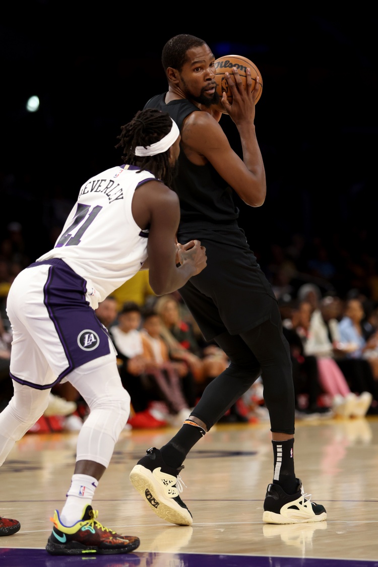贝弗利表示:“不管怎样,KD在任何时候都能给你25分,这不是谁适应谁的问题,他以正确的方式打球,到了第四节他会更有侵略性。以前对手总是要包夹他,我们和他交手时就不想让他持球,我们就是会包夹他。”